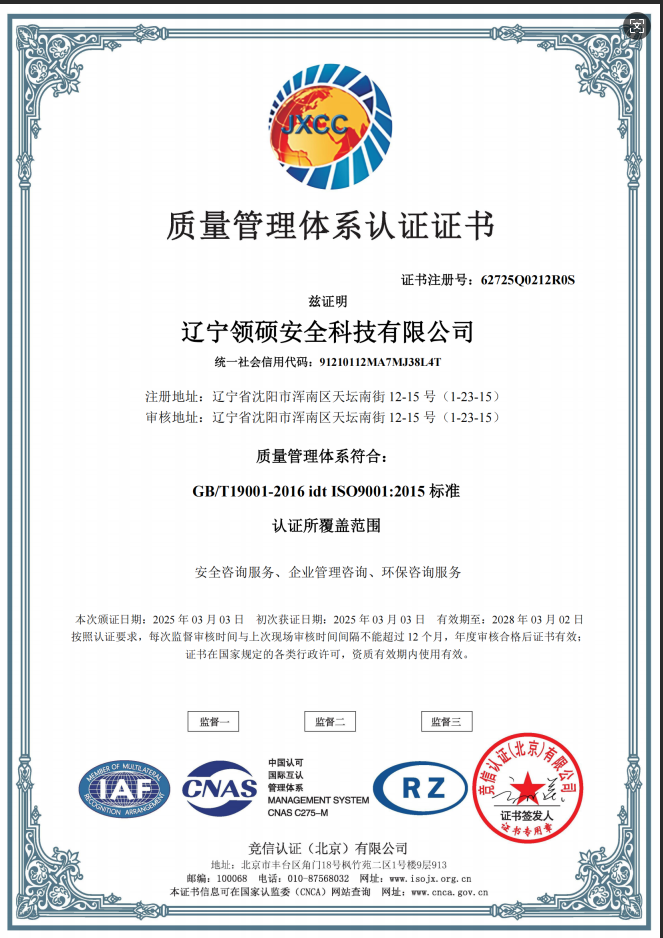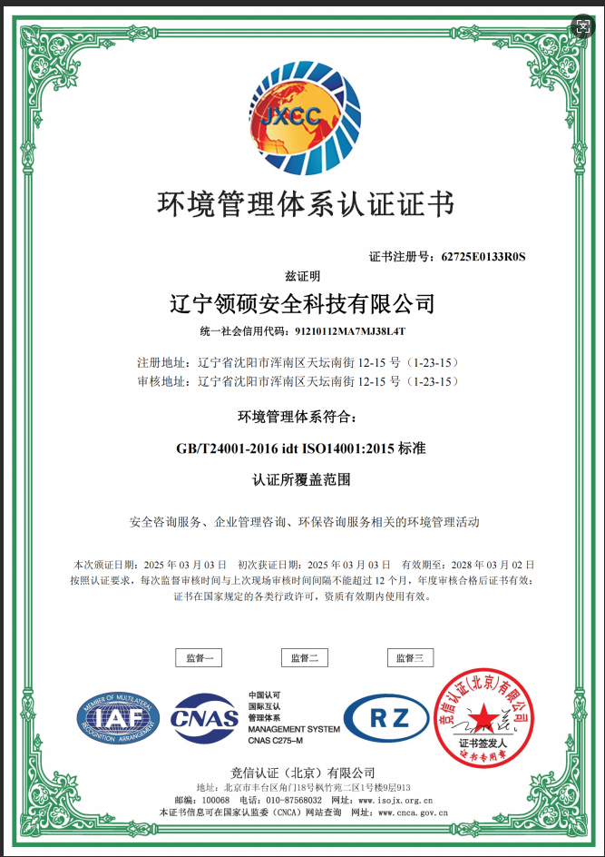 遼寧領(lǐng)碩安全科技有限公司位于遼寧省沈陽市渾南區(qū)天壇南街12-15號(hào),注冊(cè)資金300萬。主要經(jīng)營(yíng)范圍為遼寧省范圍內(nèi)的安全環(huán)保咨詢,生產(chǎn)安全事故應(yīng)急預(yù)案技術(shù)服務(wù)、企業(yè)雙重預(yù)防機(jī)制建立、履職能力評(píng)估、企業(yè)科研項(xiàng)目安全部分服務(wù)等的技術(shù)服務(wù)機(jī)構(gòu)。現(xiàn)有員工12人,其中包括5名遼寧省級(jí)安全生產(chǎn)專家。成立于2022年4月18日,在盤錦市成立至今已經(jīng)為30余家企業(yè)提供了安全環(huán)保技術(shù)咨詢。 業(yè)務(wù)范圍包括:技術(shù)服務(wù)、技術(shù)開發(fā)、技術(shù)咨詢、技術(shù)交流、技術(shù)轉(zhuǎn)讓、技術(shù)推廣,安全咨詢服務(wù),環(huán)保咨詢服務(wù),標(biāo)準(zhǔn)化服務(wù),企業(yè)管理咨詢,科技中介服務(wù),工程管理服務(wù),特種作業(yè)...查看更多